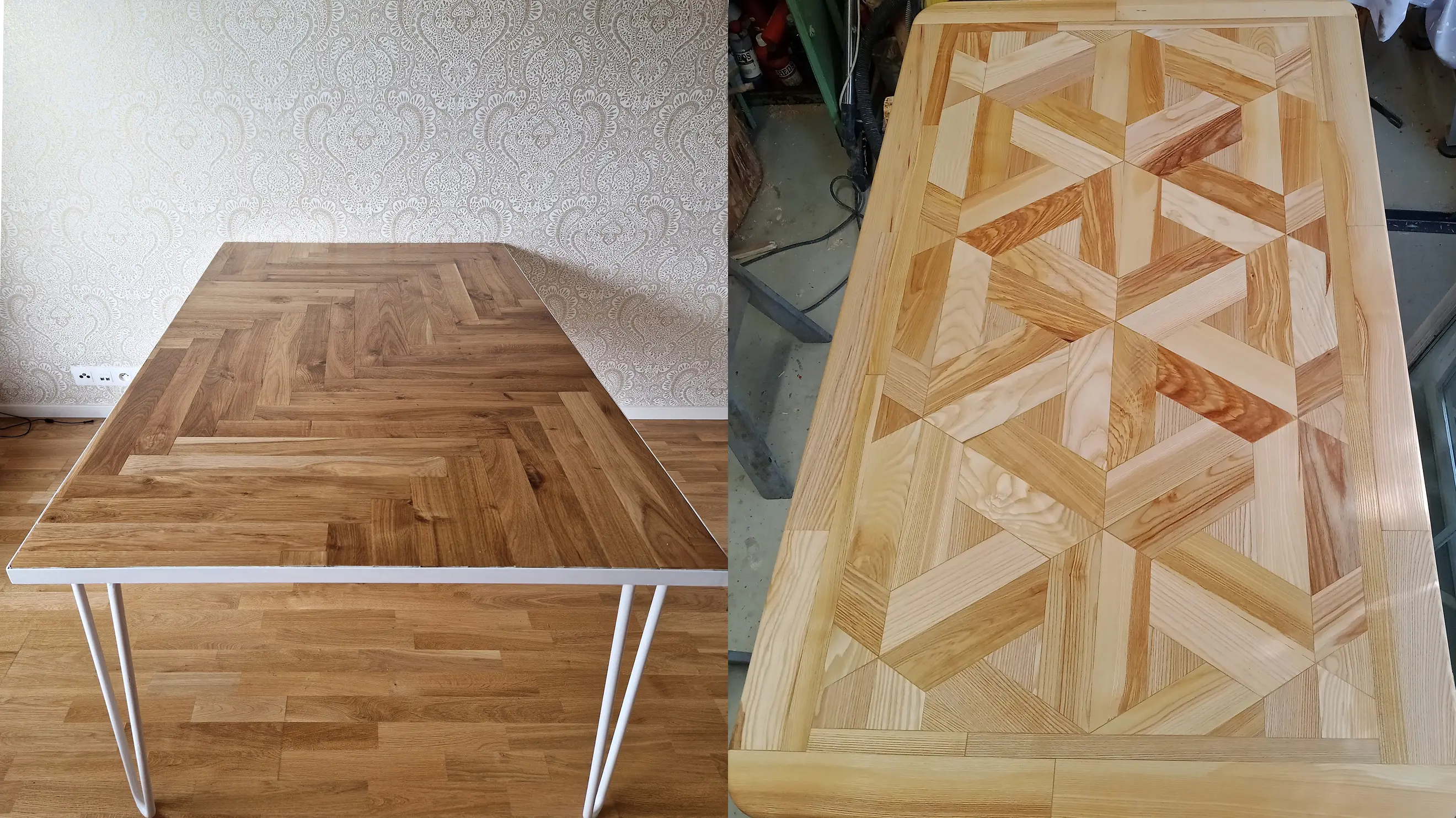 Stoly z použitých, stoletých, dubových parket. Originální design, povrch dřeva oleje a vosky. Stoly, které vydrží dalších sto let.